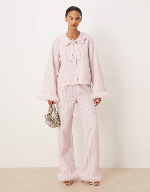 Sister Jane Wonder cotton blend tulle trim blouse and pants set in pink stripe