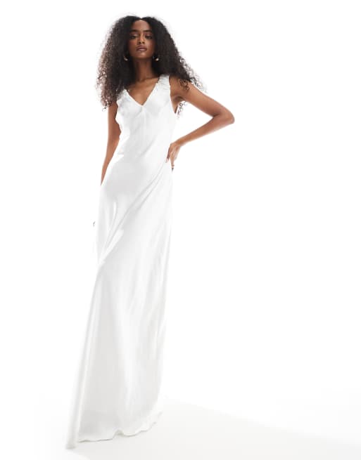 Six Stories Bridal gathered satin maxi dress in soft white