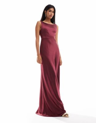 Six Stories Bridesmaids cowl back satin maxi dress in burgundy