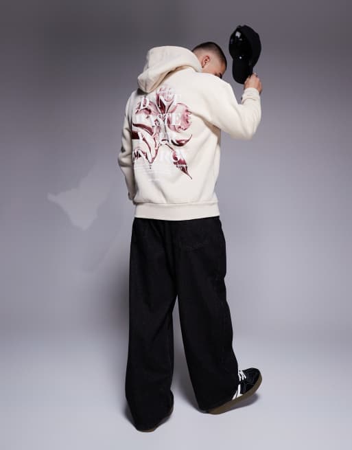 Sixth June botanical motif back print hoodie in beige