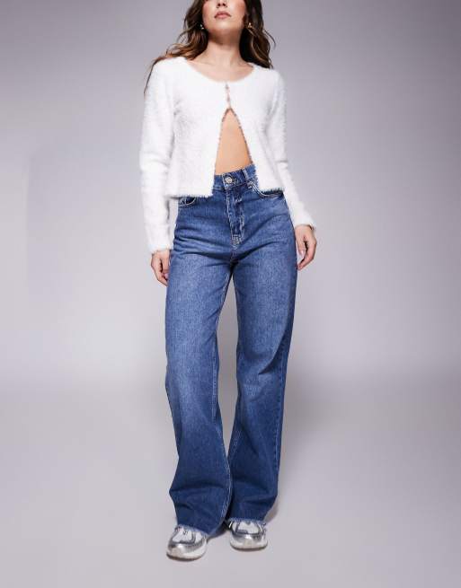 Sixth June relaxed low waist denim jeans with frayed hem in blue