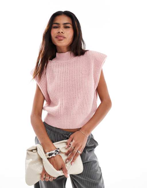 Something New Corpcore sleeveless knitted singlet with shoulder pads in pink