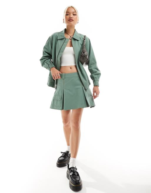 Something New x Chloe Frater denim box pleat cargo mini skirt in washed watercress green (part of a set)