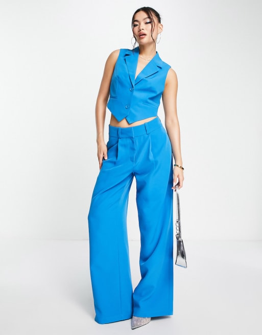 Something New x Emilia Silberg tailored waistcoat and wide leg pants set in bright blue