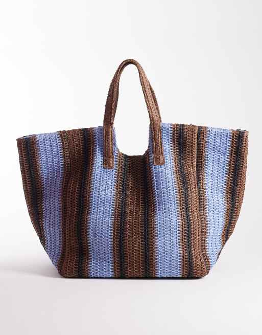 South Beach oversized woven shoulder bag in brown and blue stripe