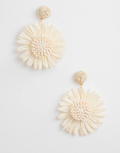 South Beach textured flower drop earrings in cream