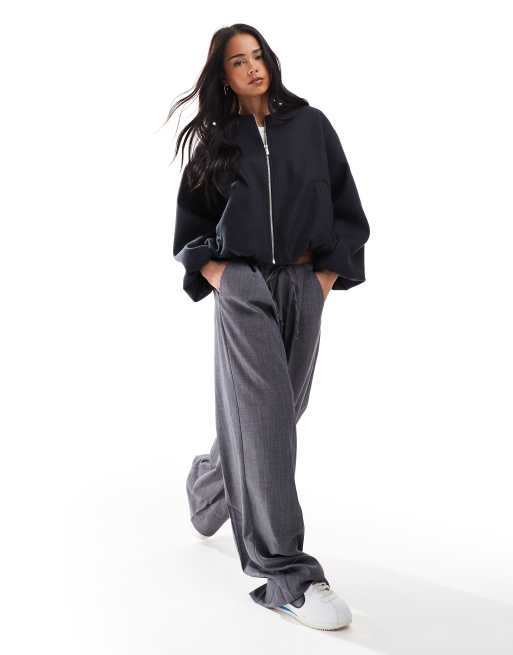 Stradivarius brushed bomber jacket in navy