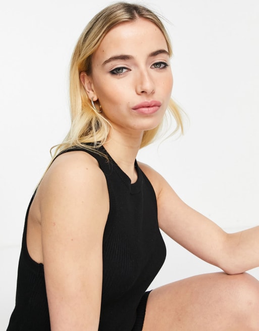Stradivarius knit singlet and flare pants set in black