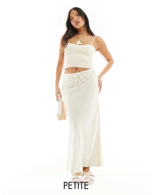 Stradivarius Petite linen blend maxi slip skirt in natural