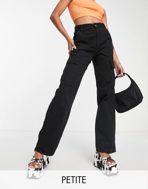 Stradivarius Petite straight leg cargo pants in black