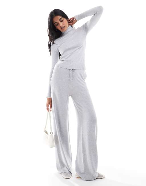 Stradivarius roll neck long sleeve knitted top & pants set in grey