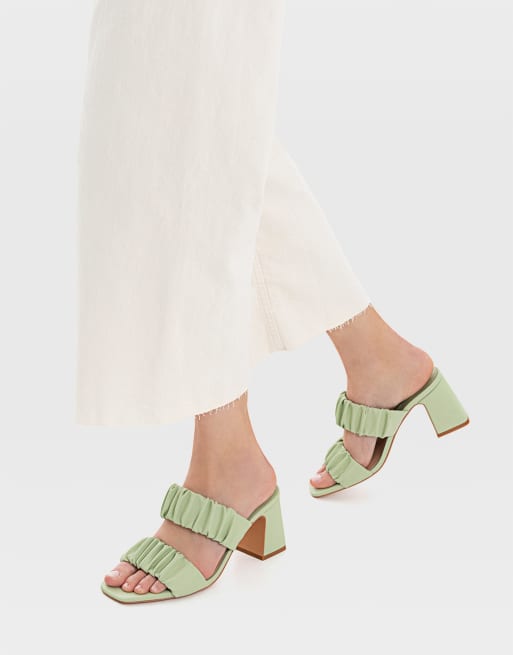 Stradivarius ruched strap heeled mules in green