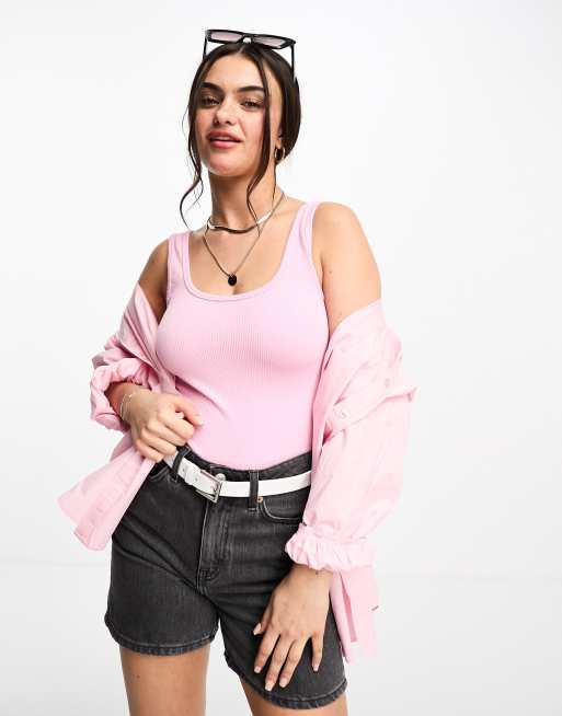Stradivarius scoop neck ribbed body in pink