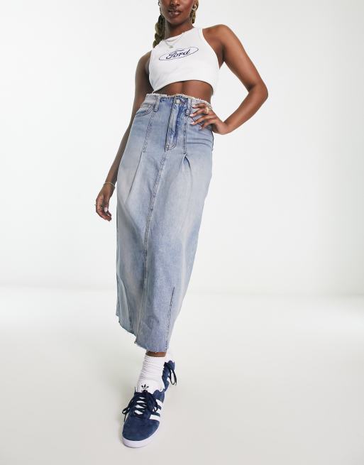 Stradivarius STR denim midi skirt with seam detail in light blue
