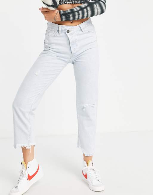 Stradivarius straight leg jeans with raw hem in bleach wash