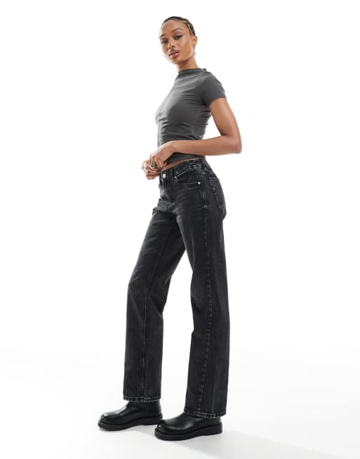 Stradivarius Tall D03 low waisted straight leg jeans in black wash