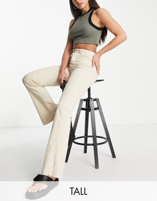 Stradivarius Tall slim flare jeans with split detail in ecru
