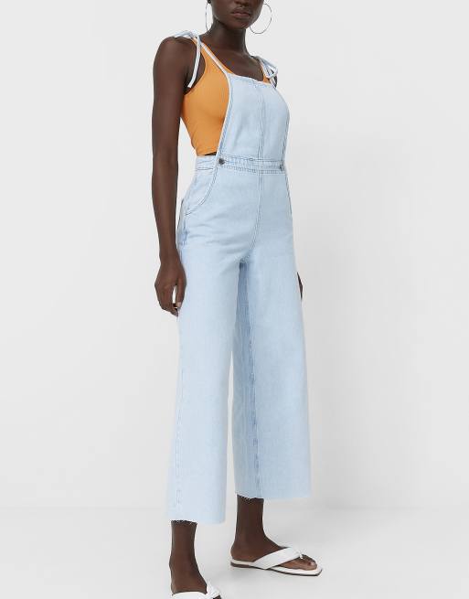 Stradivarius tie detail slouchy jumpsuit in washed blue