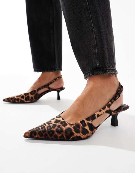 Stradivarius Wide Fit slingback heeled court shoes in leopard print