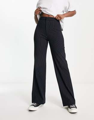 Stradivarius wide leg tailored pants in navy pinstripe