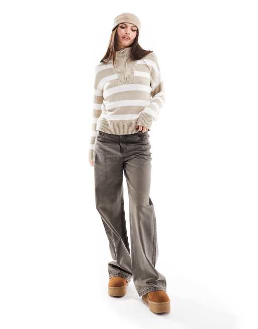 Stradivarius zip through jumper in camel stripe