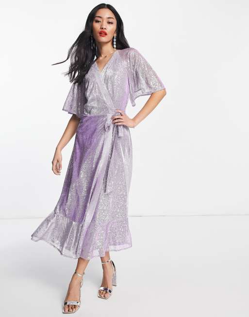 Style Cheat metallic flutter sleeve skater midi dress in lilac