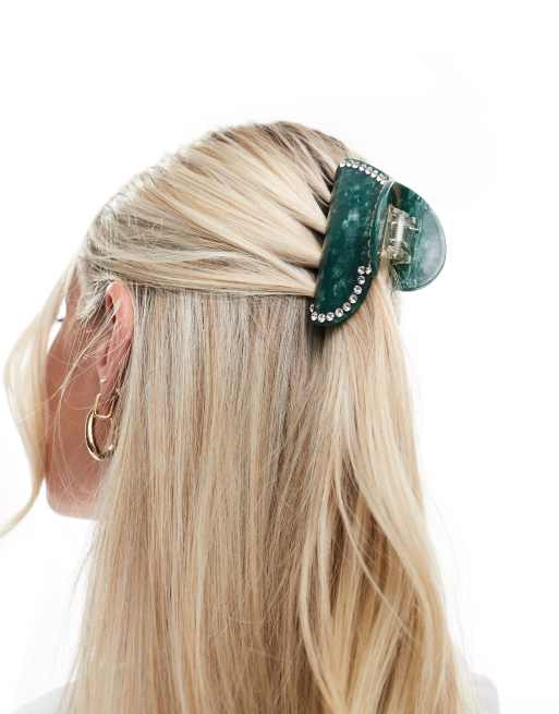 Sui Ava Crystal Heart hair claw in green marble