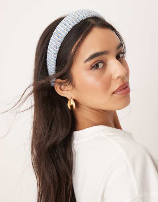 Sui Ava knitted striped headband in blue