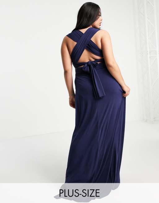 TFNC Plus Bridesmaid multiway maxi dress in navy