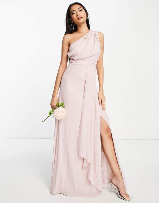 TFNC Bridesmaid chiffon one shoulder drape maxi dress in mink