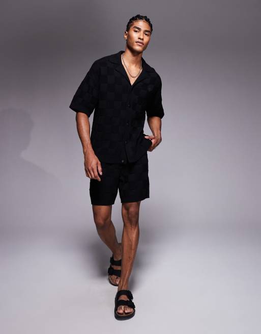 The Couture Club knitted checkerboard shorts in black (part of a set)