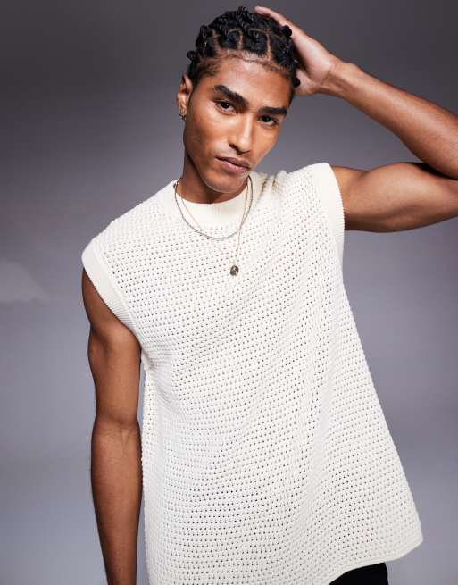 The Couture Club oversized knitted singlet in off white
