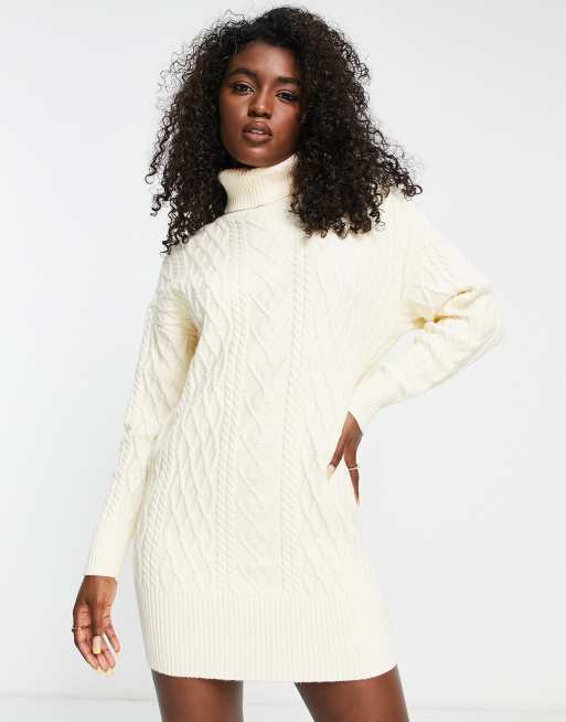 The Frolic cable knit roll neck mini jumper dress in cream