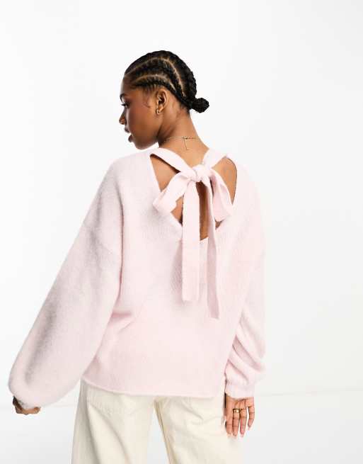 The Frolic super soft bow-back puff sleeve jumper in soft pink