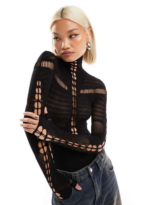 The Kript high neck glove detail cut out bodysuit in black