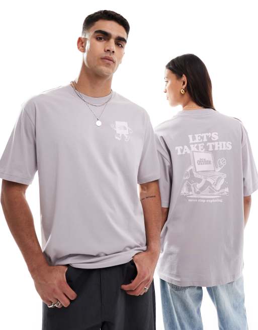 The North Face Explore backprint oversized t-shirt in pastel grey
