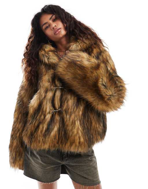 The Ragged Priest faux fur hooded coat in camel