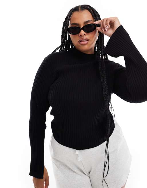 Threadbare Plus high neck split sleeve jumper in black