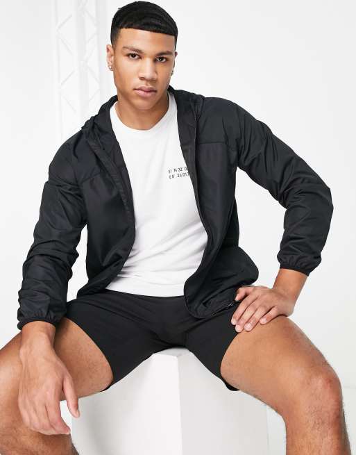 Threadbare Active lightweight packaway training jacket in black