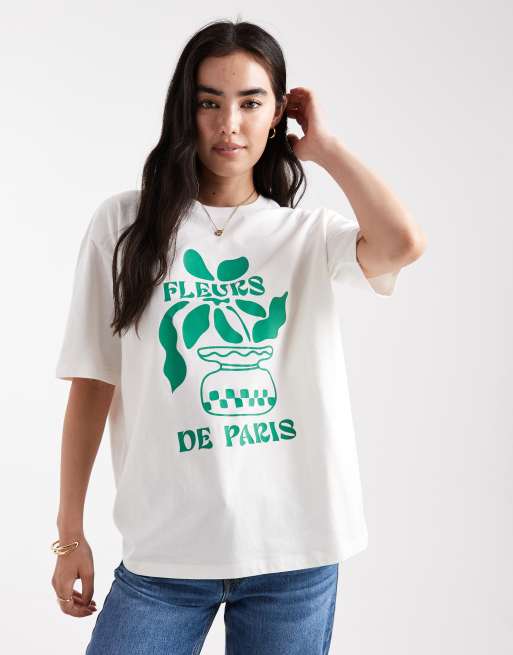 Threadbare cotton short sleeve fleurs graphic t-shirt in ecru
