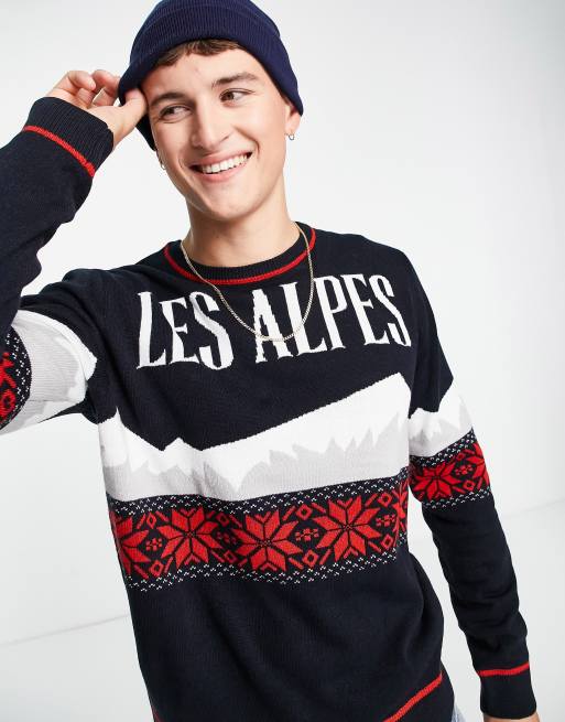 Threadbare Les Alpes crew neck christmas jumper in navy