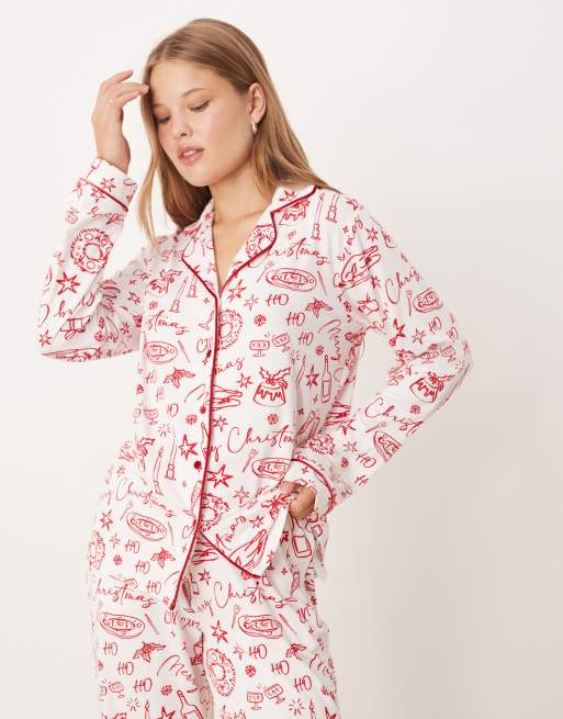 Threadbare long sleeve christmas pyjamas in white and red