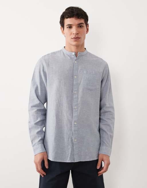 Threadbare long sleeve linen mix shirt with grandad collar in light blue