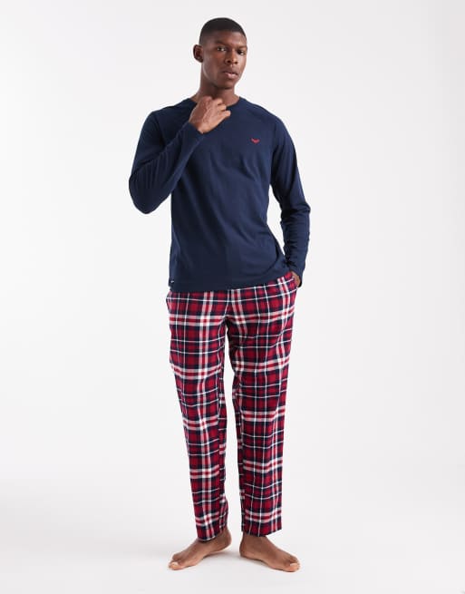 Threadbare long sleeve top and pants pyjama set in navy and red check