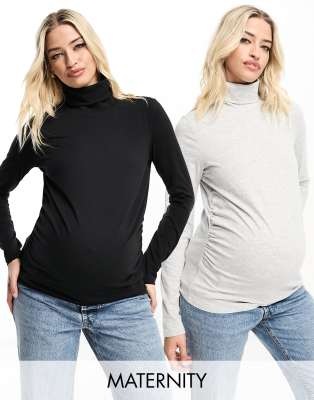 Threadbare Maternity 2 pack high neck long sleeve top in black and grey