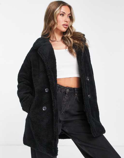 Threadbare mid length borg coat in black