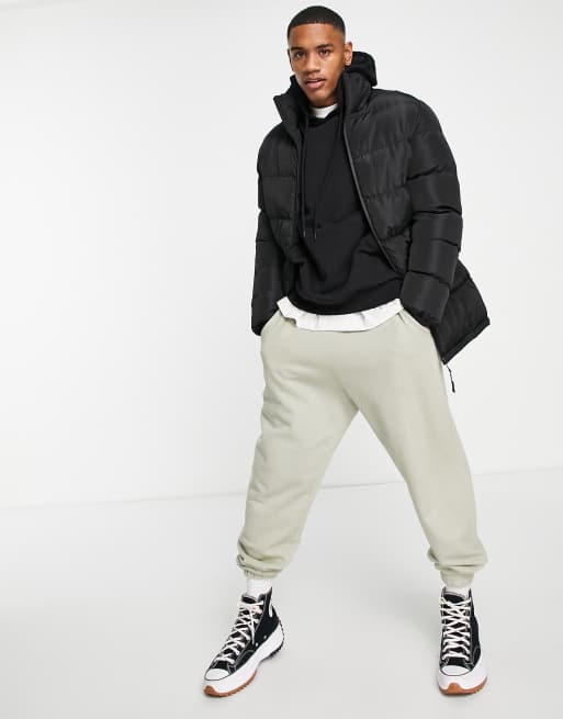 Threadbare mid-length funnel neck puffer jacket in black