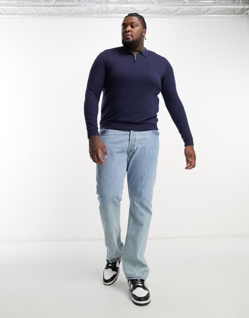 Threadbare Plus cotton 1/4 zip long sleeve knitted polo in navy
