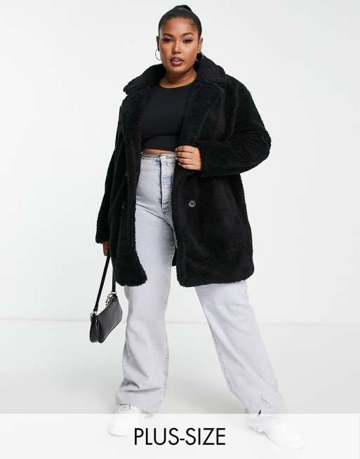 Threadbare Plus mid length borg coat in black