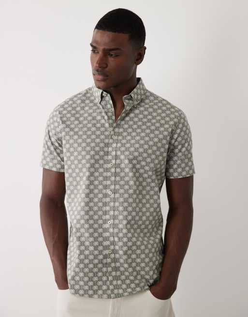 Threadbare short sleeve shirt with palm tree print in sage green